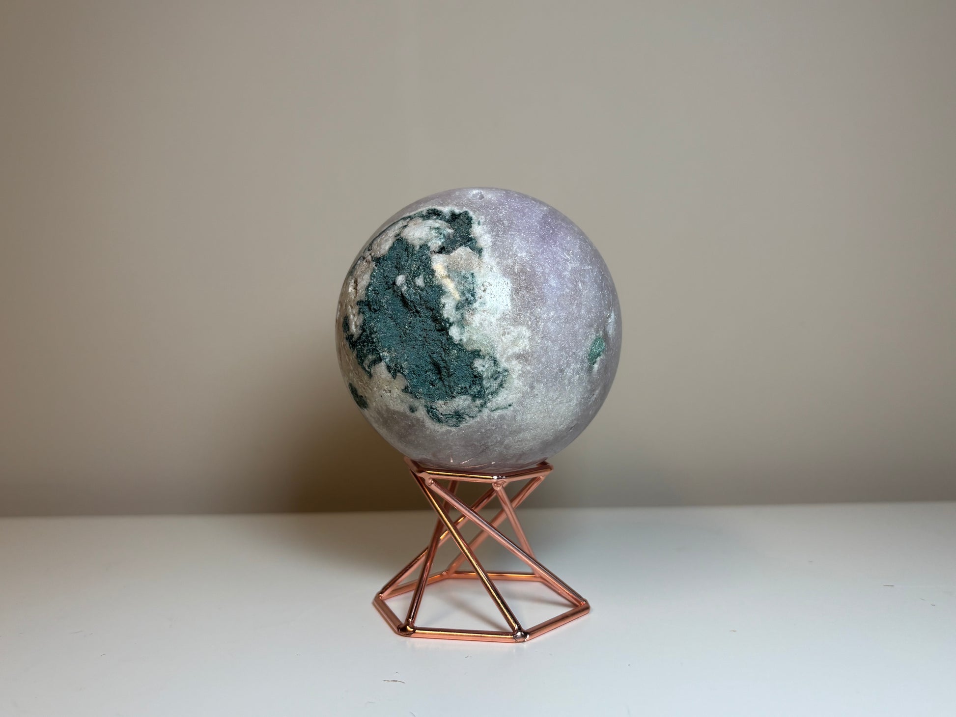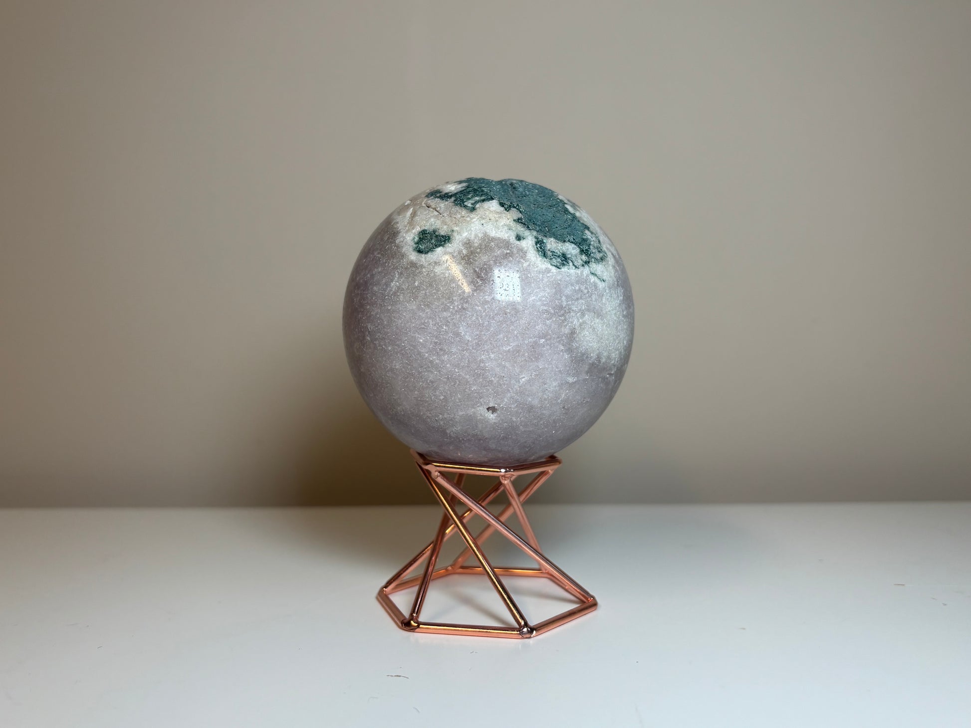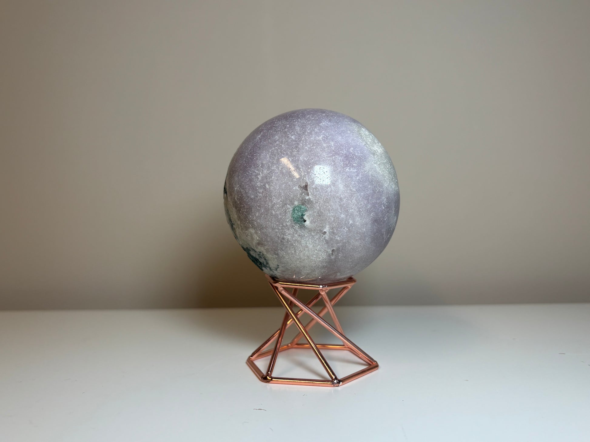 Prachtige roze amethist bol van circa, 587 gram, 7,5 cm hoog en breed.