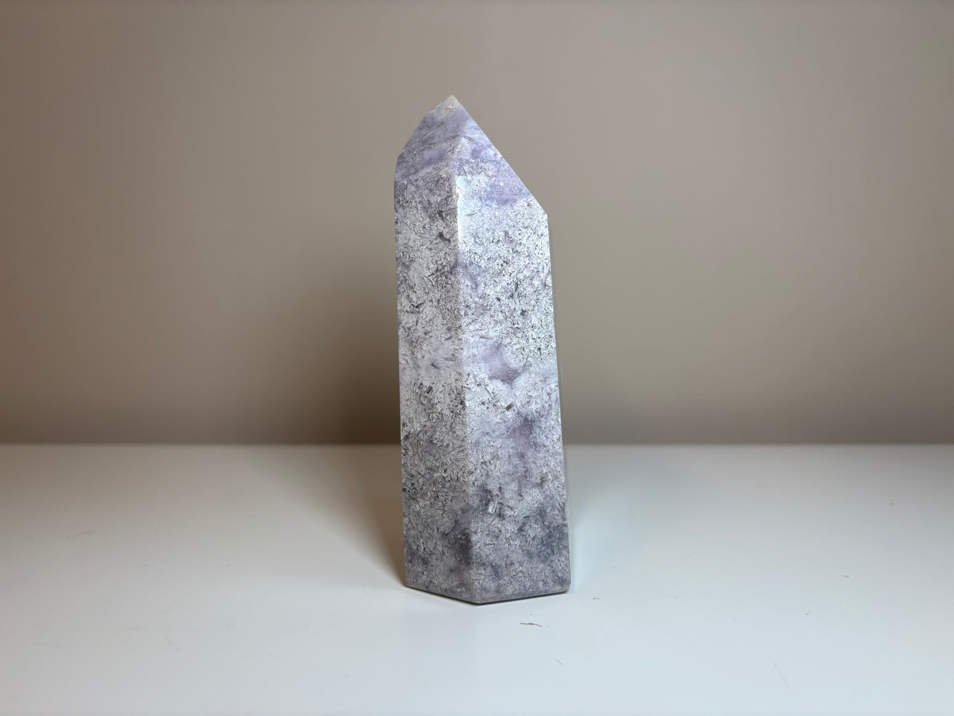 Prachtige roze amethist obelisk van circa, 602 gram, 12,5 cm hoog en 6,5 cm breed.