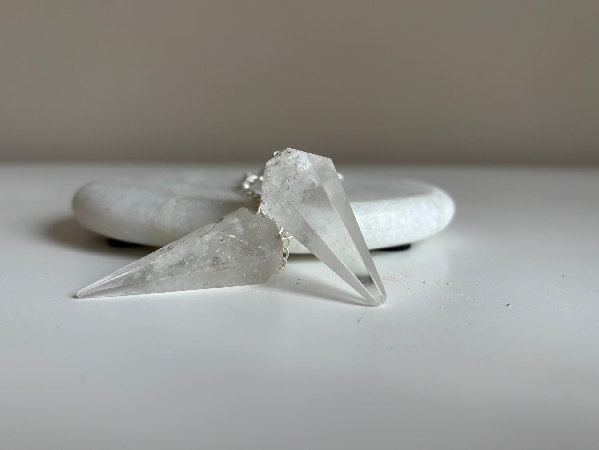 Prachtige pendel van bergkristal! Circa 3 cm groot.