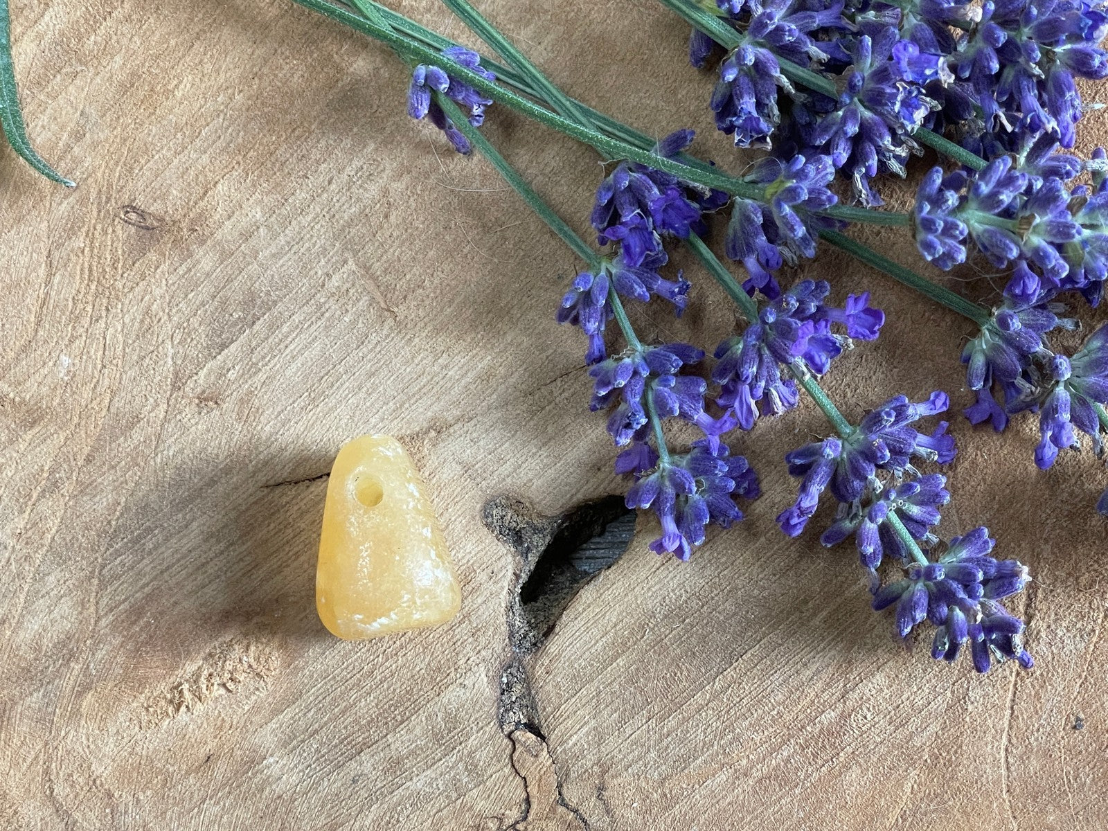 Calciet geel, hanger doorboord