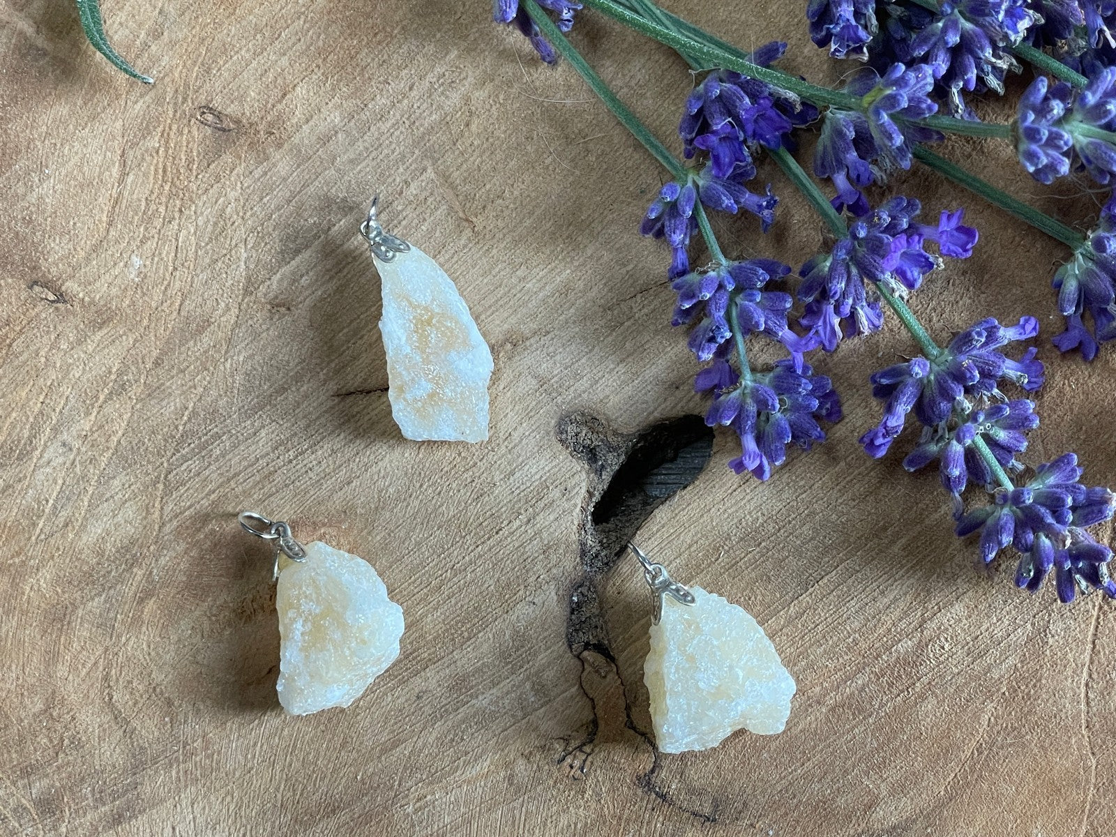 Hanger ruw stukje gele calciet, 1-2 cm groot