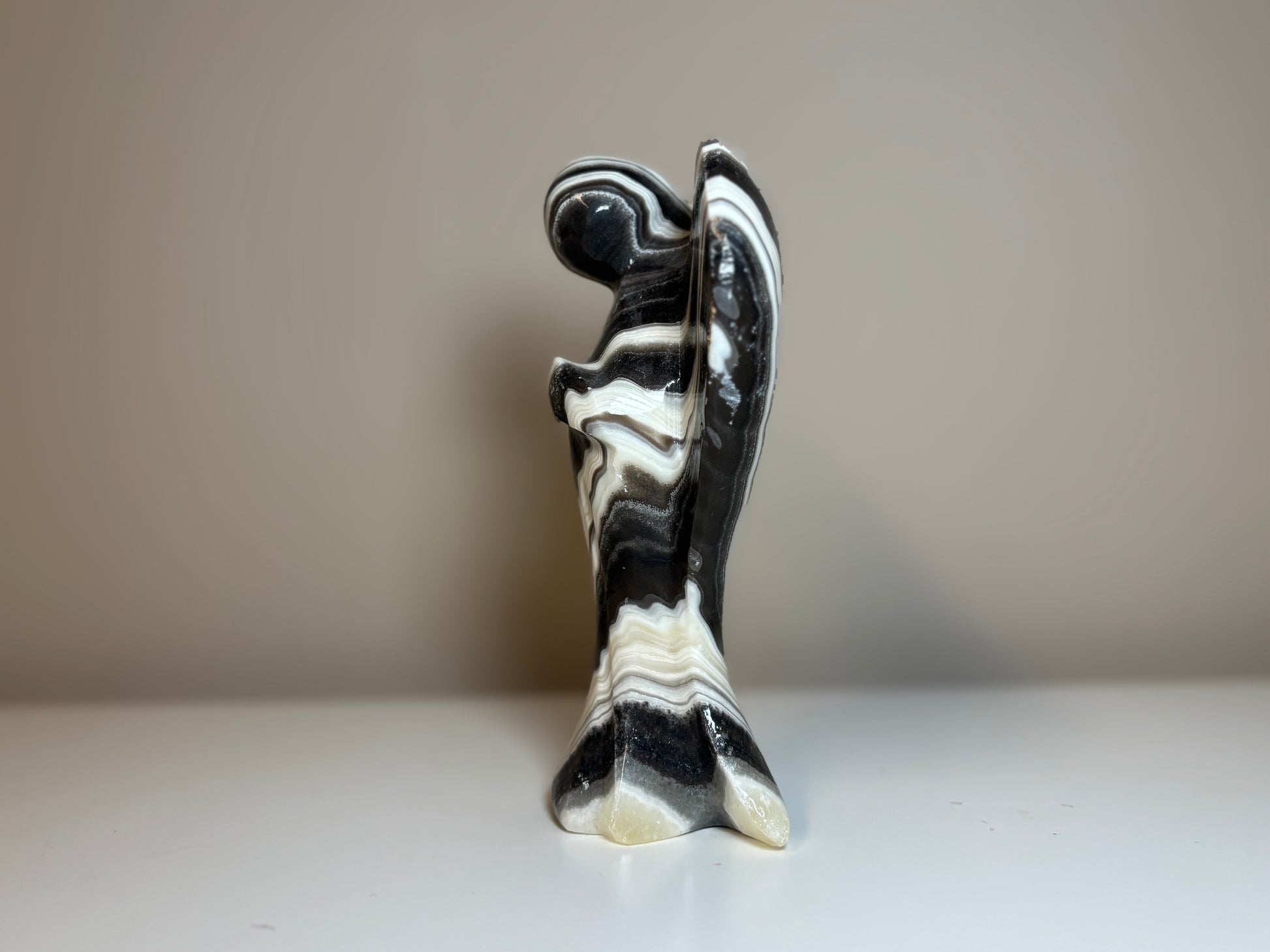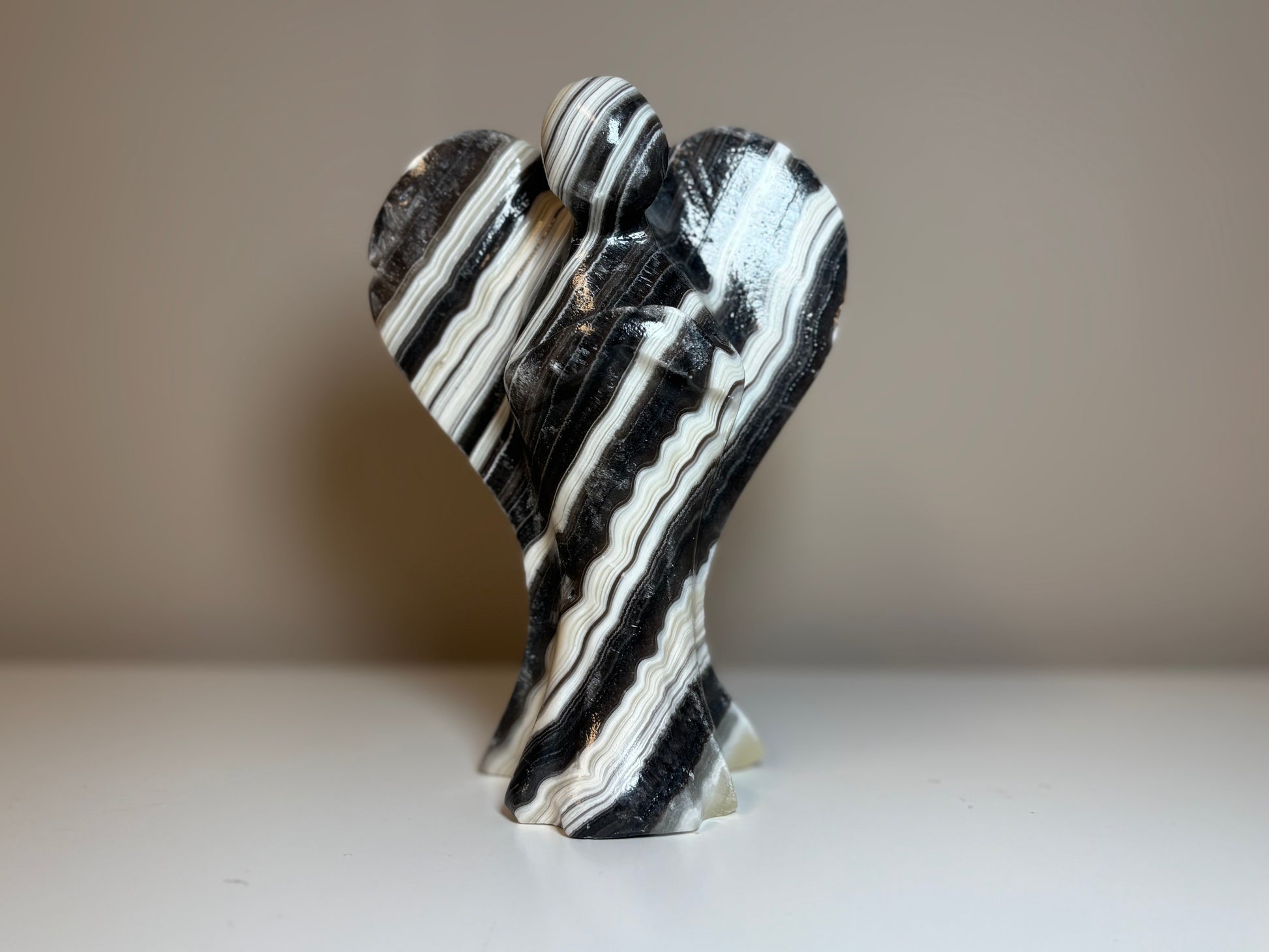 Zebra calciet engel! Prachtig exemplaar van circa 200 gram en 14 cm hoog.