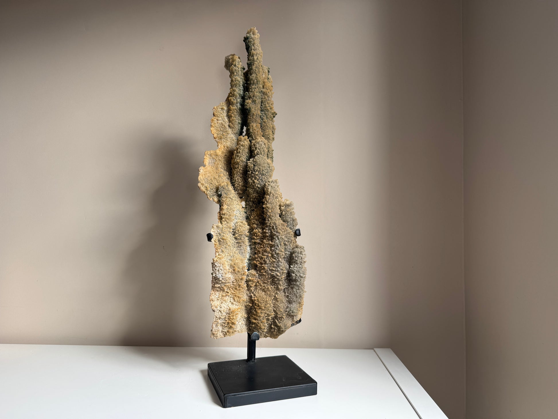 Prachtig ruw stuk op standaard van Chalcedoon, deze beauty is 15 cm breed, 62 cm hoog en weegt maar liefst 5kg!