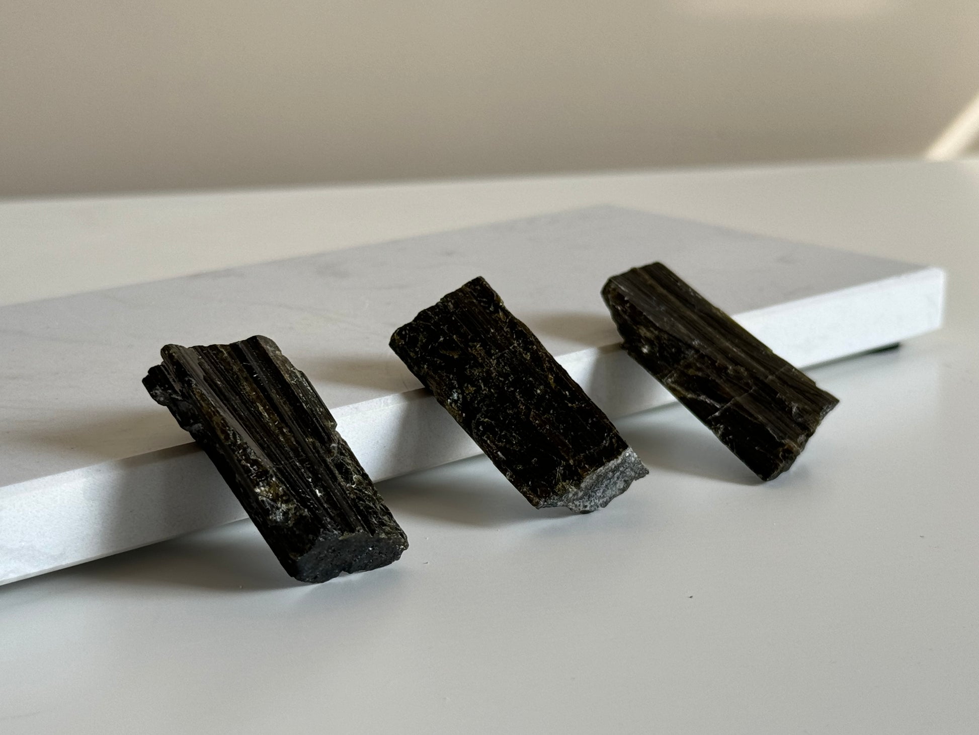 Prachtige ruwe stukjes van Epidoot uit Pakistan! Circa 3 tot 5 cm lang en 1,5 tot 2,5 cm breed.