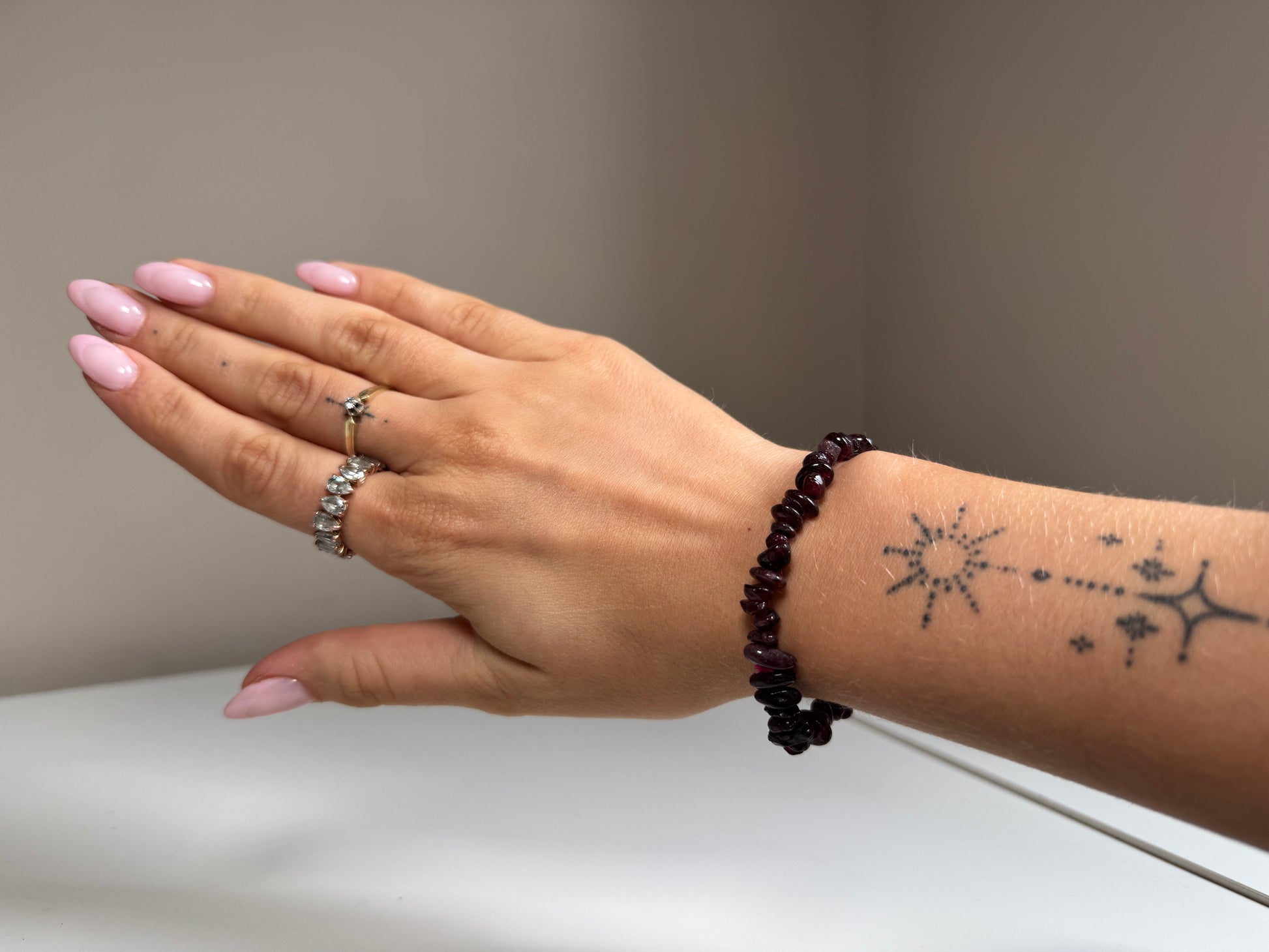 Granaat schenkt veel energie en herstelt krachtig. De steen reinigt de chakra’s en voorziet ze van nieuwe energie. Wanneer je in een hectische periode verzeild bent geraakt, helpt de granaat je eruit te komen en je leven te veranderen, dit is de steen van verzoening. Hij geeft aandacht en maakt dienstbaar voor de medemens. Granaat is een prima steen bij concentratiegebrek of bij ongecontroleerde driftbuien. Hij helpt een intens verdriet of hectische periode te verwerken, hij geeft hoop en moed en versterkt het overlevingsinstinct. Als je deze steen een tijd draagt zal hij je mensenkennis vergroten. Granaat lost nutteloze ingesleten gedragspatronen op en gaat voorbij aan weerstand of onbewuste, zelf veroorzaakte sabotage. Emotioneel heft hij remmingen en taboes op, opent het hart en geeft zelfvertrouwen. Hij zorgt ervoor dat je bij jezelf blijft.