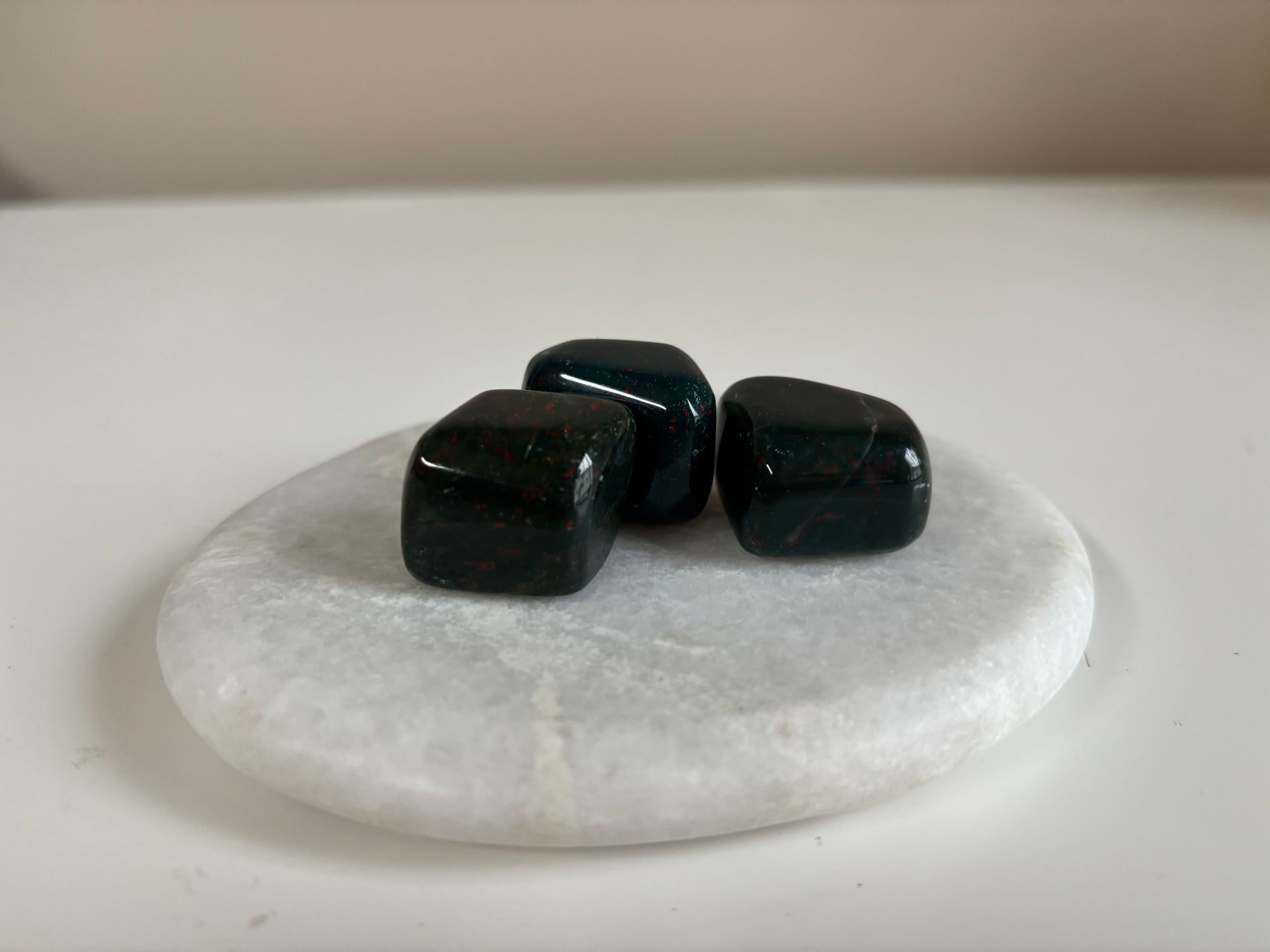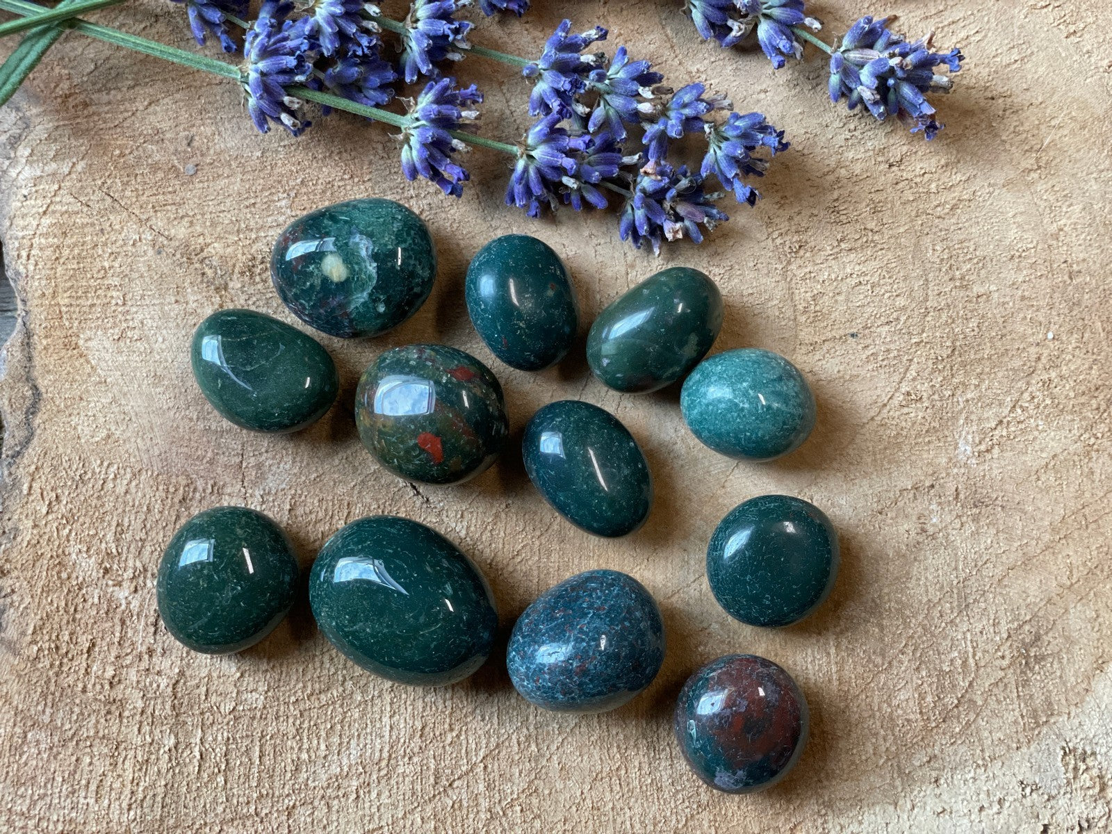 Heliotroop wordt ook wel de bloedsteen genoemd. Hij bestaat namelijk uit groene kwarts met vlekjes van rode en gele jaspis.