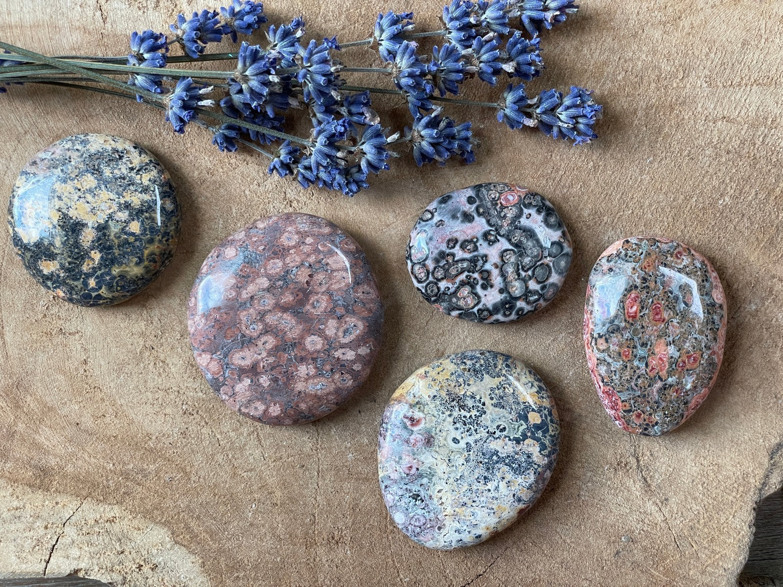 Fantastische zakstenen van luipaard jaspis, formaat rond de 5 cm