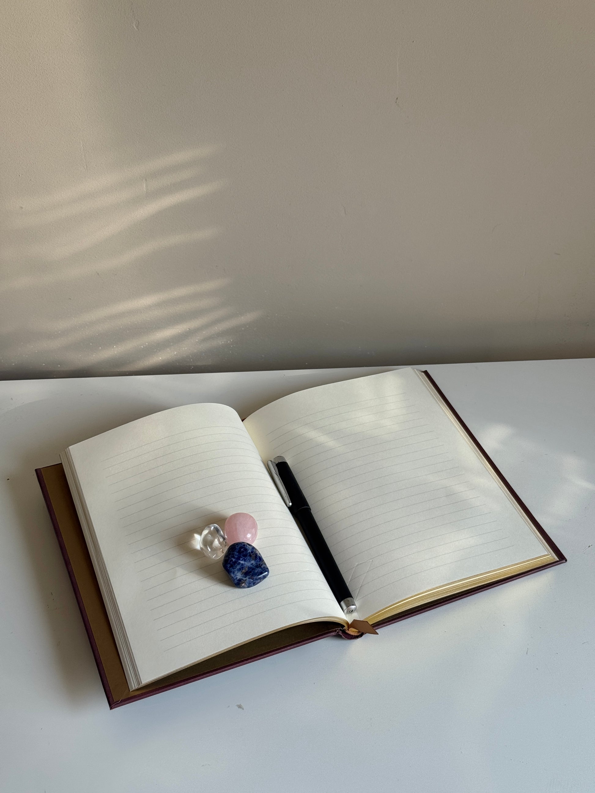 Premium Editie (€55): Fysiek journal + pen + edelsteen + mails (kies je journal uit in de winkel of meldt het bij je winkelwagen of via whatsapp wat de journal van je keuze is)