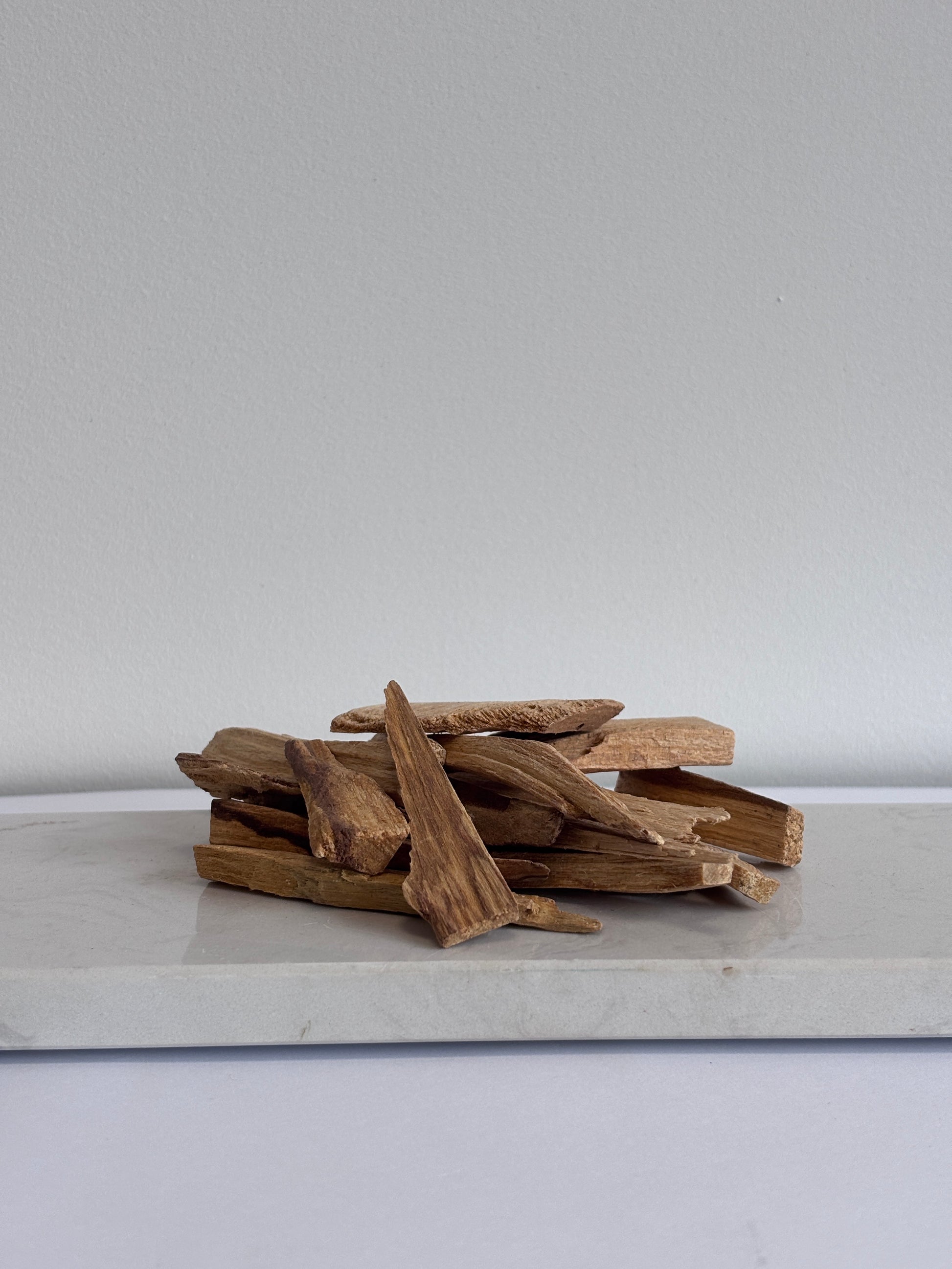 Deze zakjes bevatten reststukjes heilig hout — perfect om een vuur of haard mee aan te steken. Het hout verspreidt een zachte, zuiverende geur en brengt een moment van rust en verbinding met de natuur.