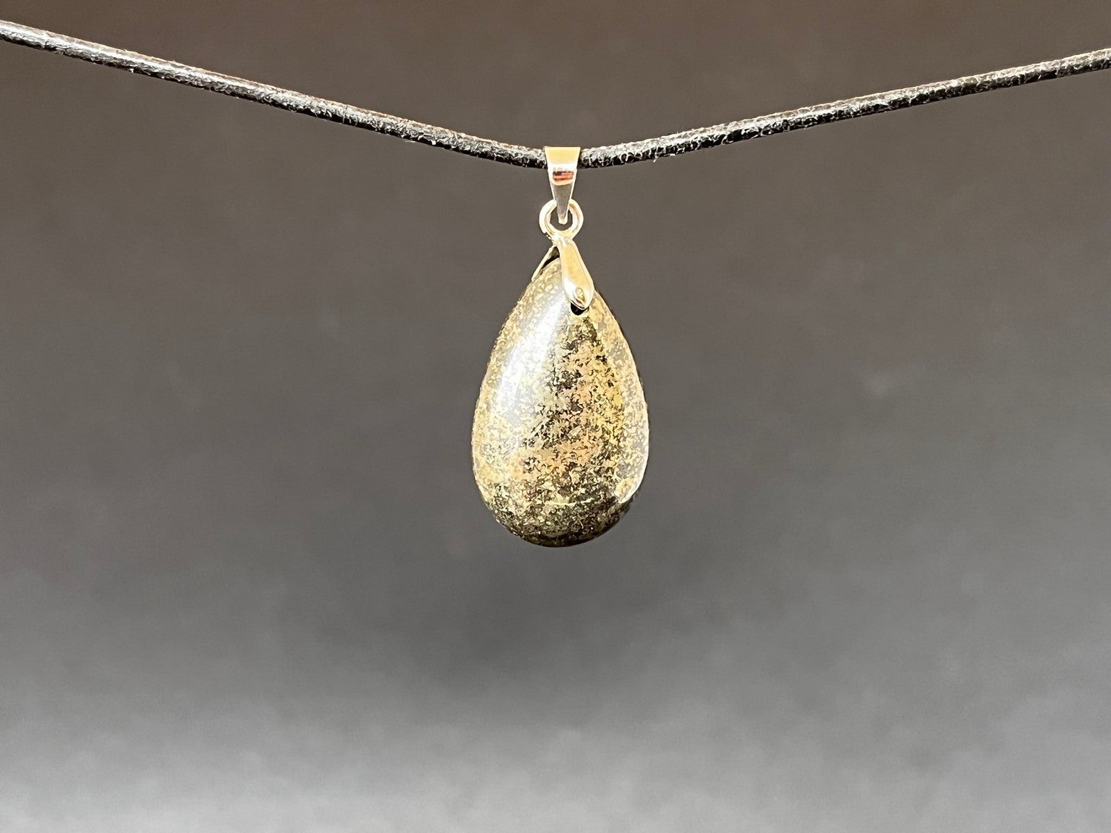 Een mooie hanger van pyriet in een druppel vorm van 25 mm lang. Zie andere druppel hangers voor een indicatie. Foto's volgen z.s.m.