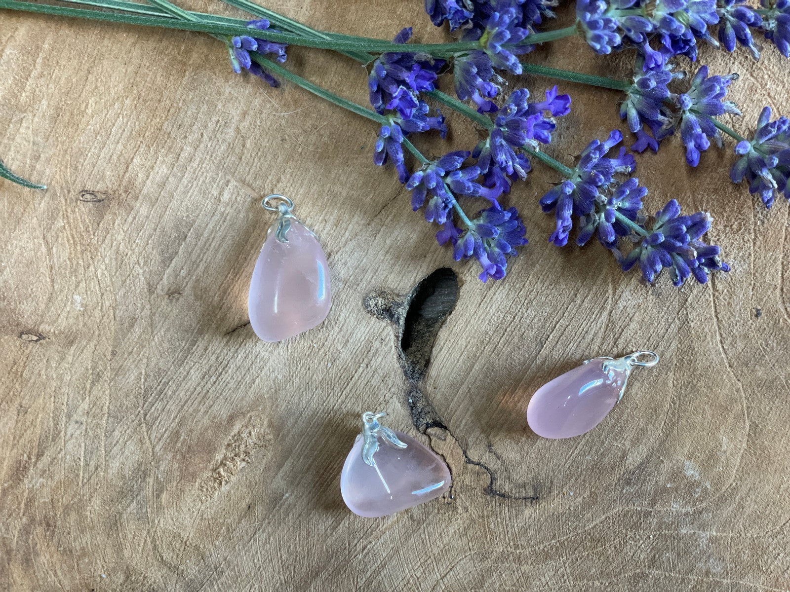 Hanger van rozenkwarts, vrije vorm. A-kwaliteit