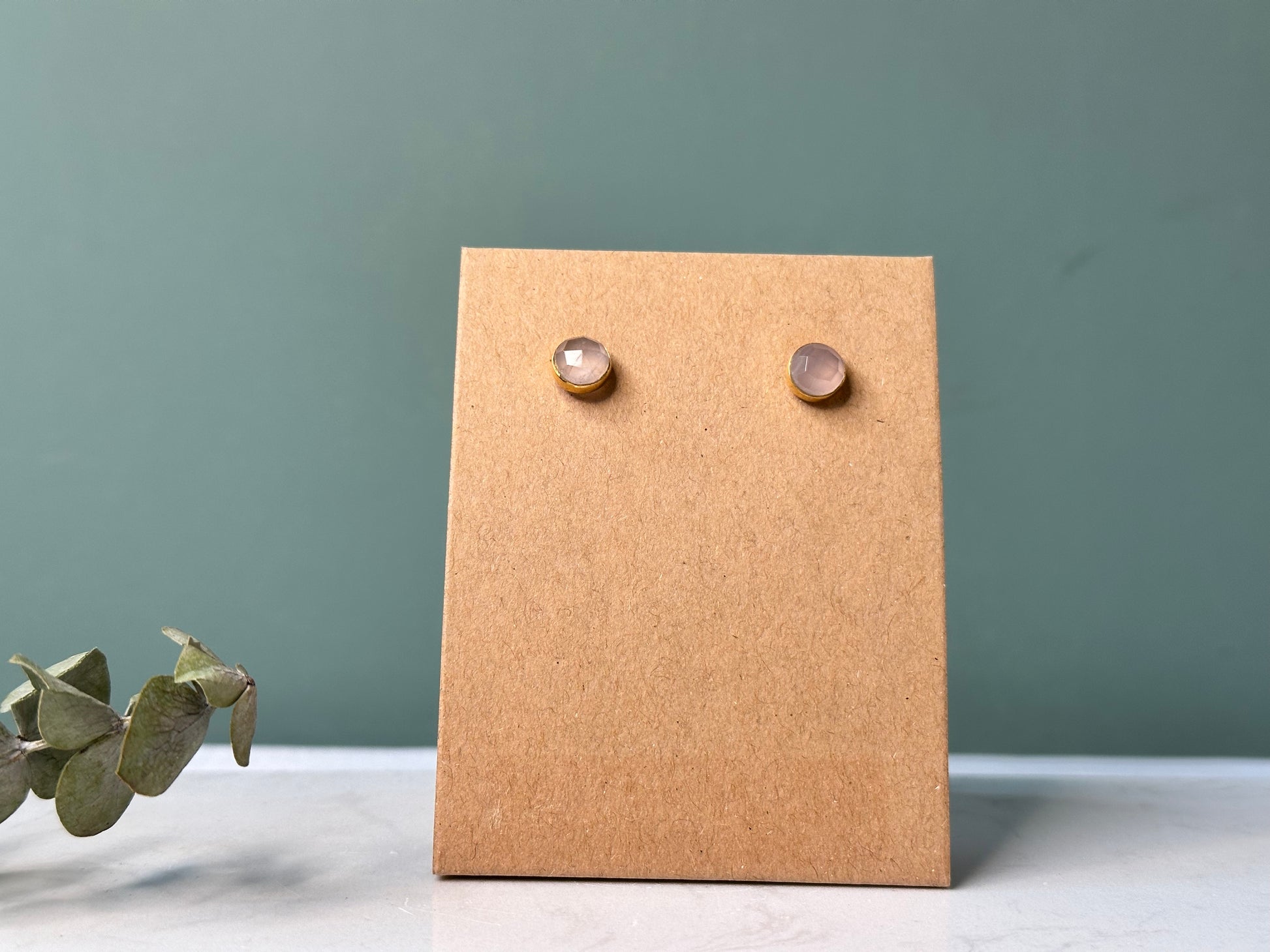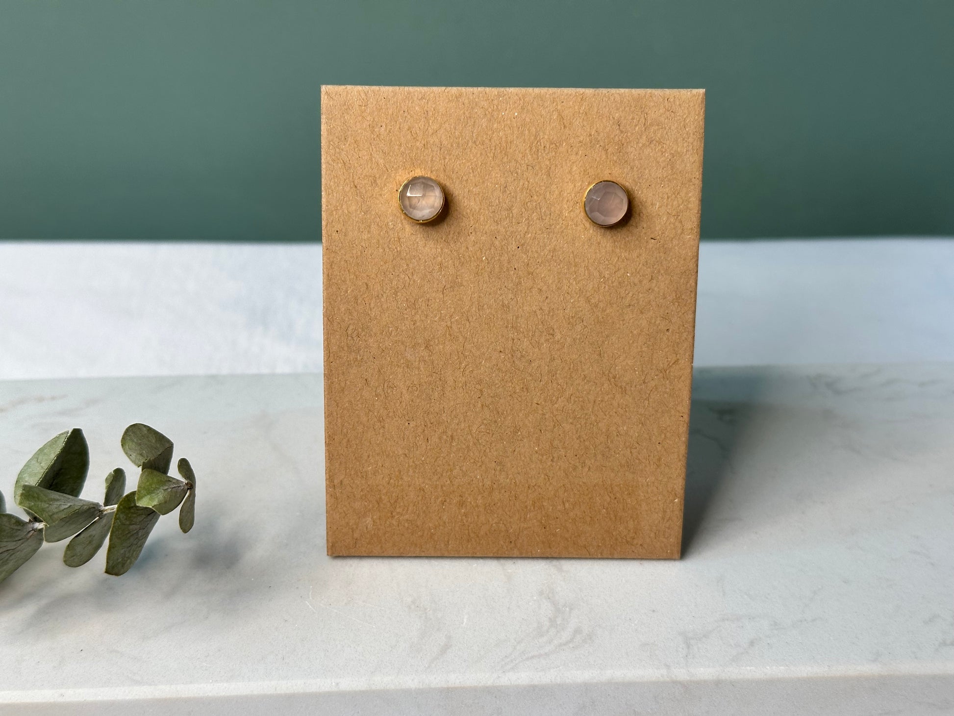 Rozenkwarts - gouden oorbellen