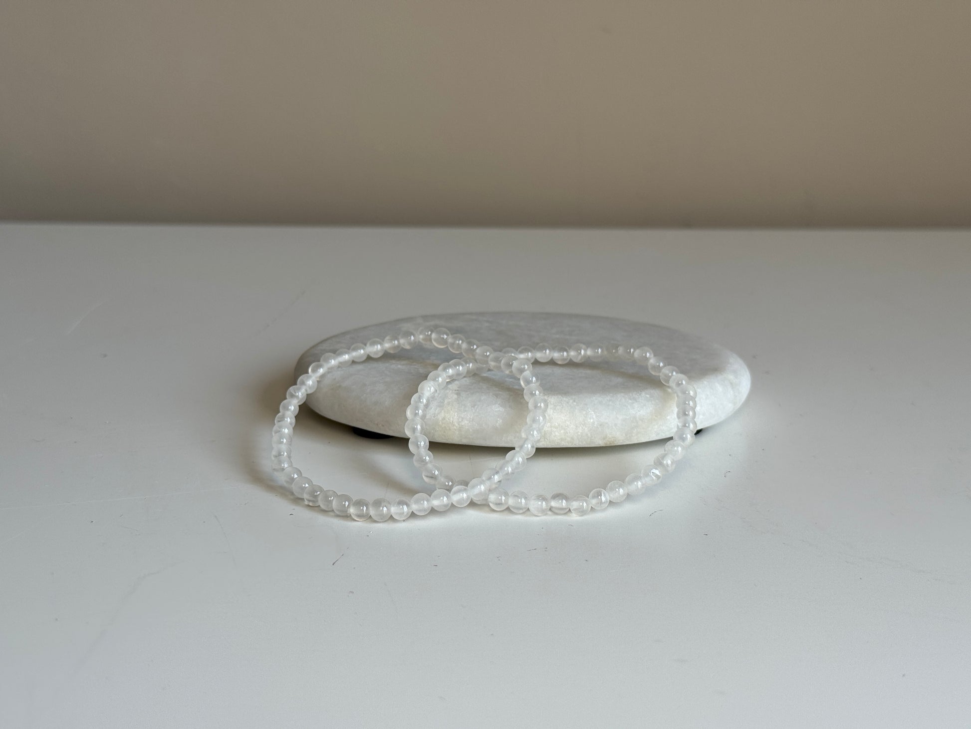 Prachtige kwaliteit armbanden van Seleniet met een kraal van 4mm!