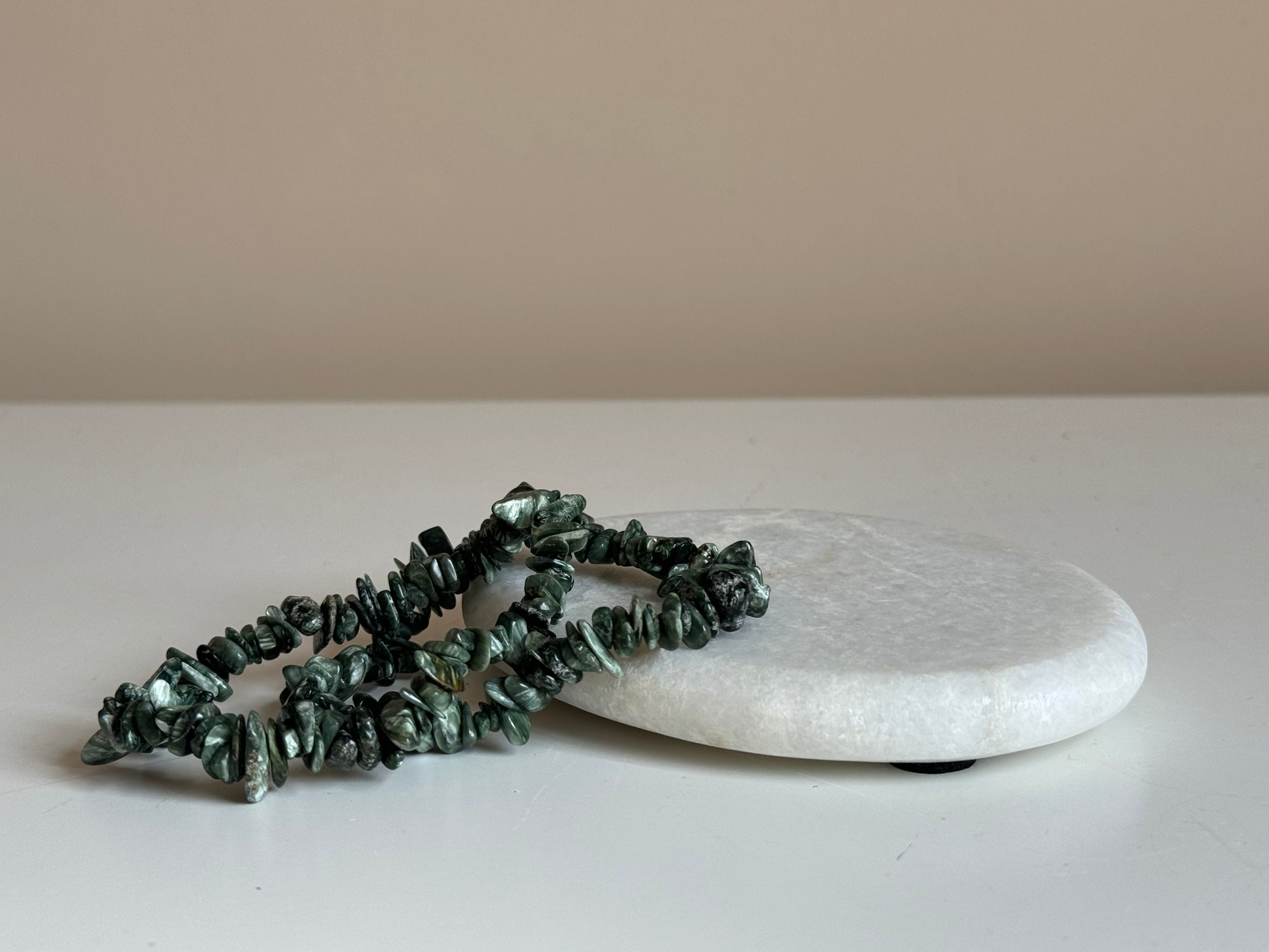 Serafiniet/seraphiniet is een steen met een hoge vibratie en zorgt voor heling op ieder level. Het is een krachtige en genezende steen voor lichaam, geest en mind. Hij helpt je los te komen van je denken en je emoties te bevrijden. Serafiniet geeft spirituele verlichting. Daar hij alle chakra’s in balans brengt kan de (levens)energie terugkeren en goed doorstromen, waardoor de natuurlijke balans hersteld wordt.